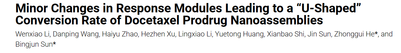 鉴于此,beat365在线体育官网登录入口何仲贵教授和孙丙军教授在美国化学会旗下纳米科学和纳米技术顶级期刊Nano Letters (IF=10.8) 在线发表题为“Minor Changes in Response Modules Leading to a “U-Shaped” Conversion Rate of Docetaxel Prodrug Nanoassemblies”的研究论文,开发了模块化的多西他赛前药纳米组装体,,发现响应模块的细微变化会显著影响前药纳米组装体的抗肿瘤效果和安全性。