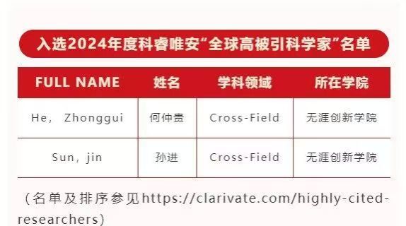 beat365在线体育官网登录入口2位学者入选2024年度科睿唯安“全球高被引科学家”名单