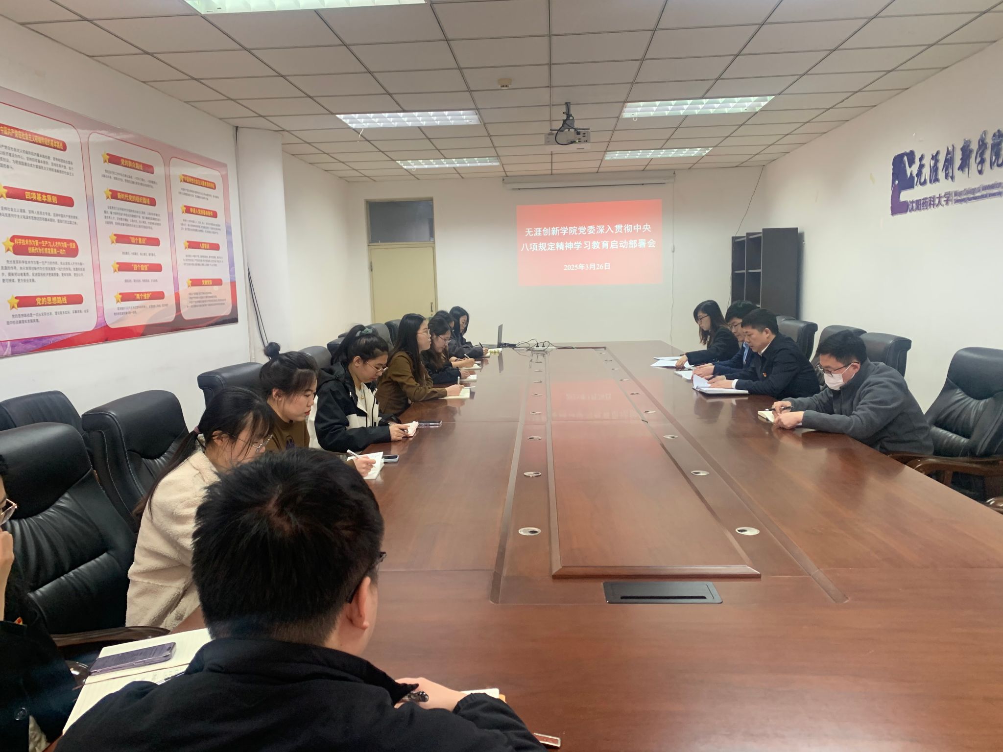 3月26日上午,beat365在线体育官网登录入口召开党委(扩大)会议,启动部署深入贯彻中央八项规定精神学习教育。学院党委书记张林芝主持会议,学院领导班子成员、各党支部书记和辅导员参加会议。