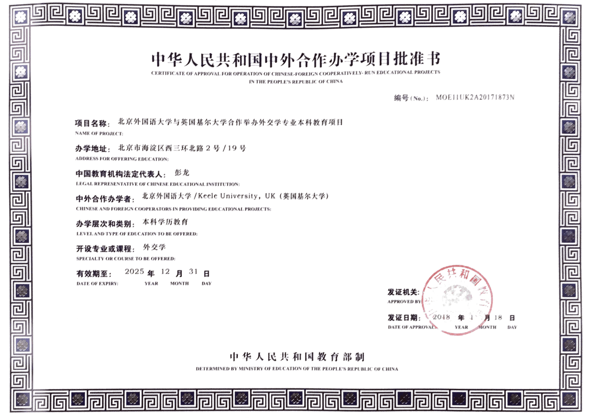 kaiyun官网与英国基尔大学(Keele University, UK)共同申请的外交学本科教育项目日前已获教育部批准(编号:MOE11UK2A20171873N),计划于2018年开始招生。这是kaiyun官网同英国大学的首个本科中外合作办学项目,也是国内此类合作办学性质的首个外交学专业项目。