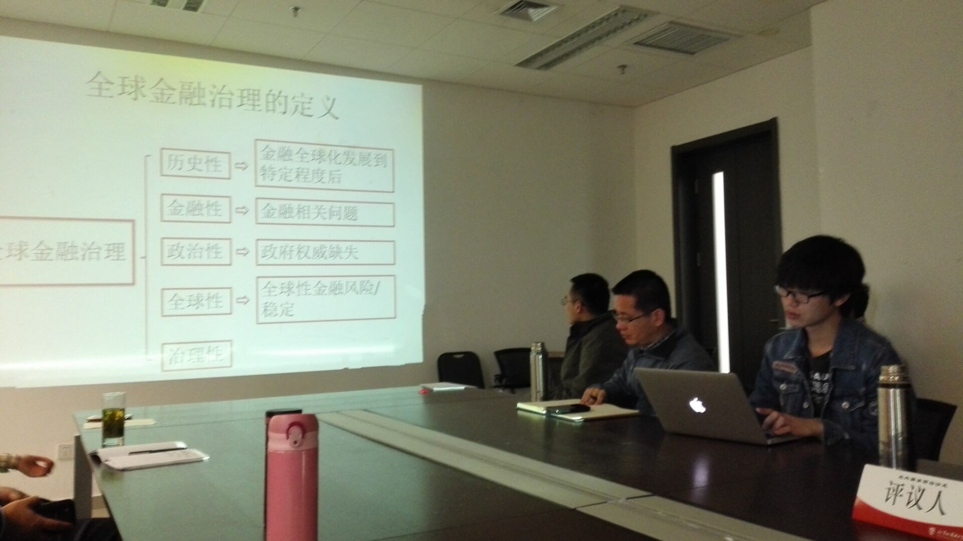接下来,张发林博士结合自己精心制作的PPT,开始了演讲。演讲大致分为五个部分:选题的背景与自身考虑、IPE视角下的全球金融治理、全球金融治理的定义、全球治理的演变以及中国的角色。