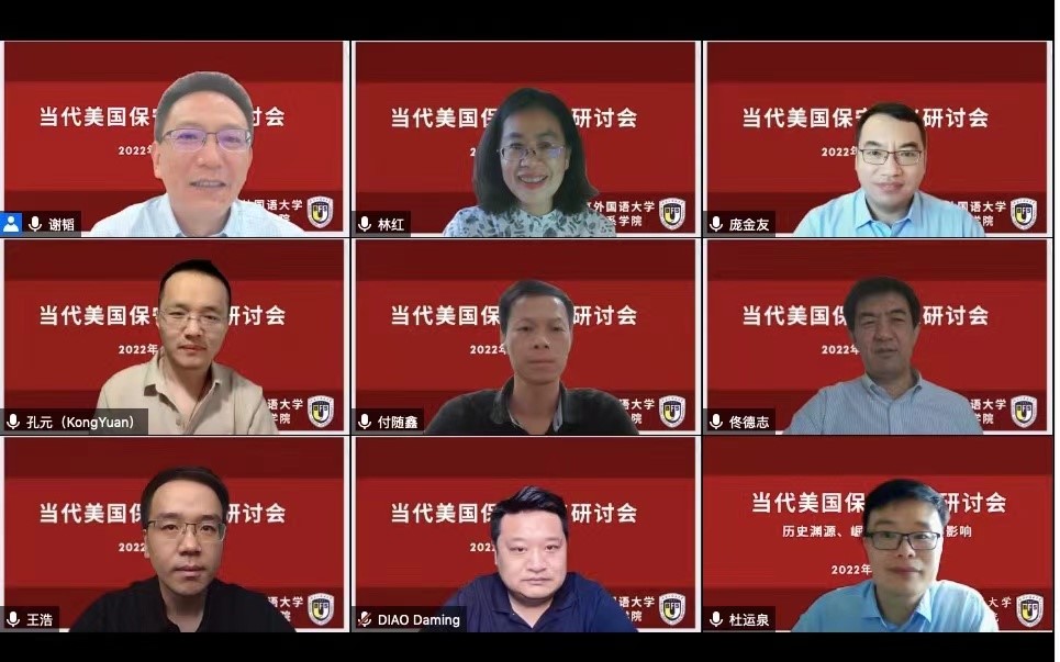 2022年6月24日上午,由kaiyun开云官方网站主办的“当代美国保守主义:历史渊源、崛起路径、现实影响”研讨会在线上召开。来自北京外国语大学、中国人民大学、清华大学、天津师范大学、复旦大学、中国政法大学、中国社会科学院、上海社会科学界联合会《探索与争鸣》编辑部等院校和单位的10位专家出席研讨会。与会专家学者就美国保守主义的历史脉络和发展现状等议题进行了深入探讨。