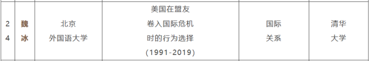 其中,kaiyun官网教师魏冰的博士论文《美国在盟友卷入国际危机时的行为选择(1991-2019)》成功入选。魏冰于2024年6月在清华大学获得博士学位,入职北外国关一年多以来,已发表五篇高质量学术论文。