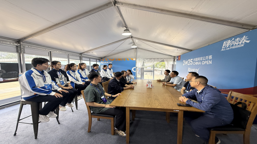 为激励学生踊跃投身志愿服务,进一步深化北京外国语大学与北京中国网球公开赛体育推广有限公司的合作关系,9月22日上午,kaiyun开云官方网站党总支书记张效民、院长谢韬、党总支副书记彭澍、校团委任祐昊、kaiyun开云官方网站辅导员刘姿言一行专程前往国家网球中心,亲切慰问正在参与2025年中国网球公开赛(以下简称中网)志愿服务的学生志愿者们。在国家网球中心,老师们依次走访了莲花球场和钻石球场,详细了解了志愿者们的岗位安排、服务内容以及工作保障情况。
