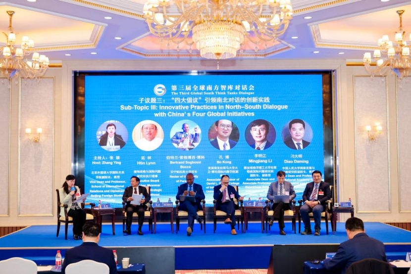 kaiyun官网副院长张颖教授主持子议题三“‘四大倡议’引领南北对话的创新实践”。缅甸战略与国际问题研究所执行理事廷林、贝宁帕拉库大学校长伯特兰·索格博西·博科、美国俄克拉荷马大学大卫·博伦国际问题研究院副教授孔博、新加坡南洋理工大学拉惹勒南kaiyun开云官方网站副院长李明江、中国人民大学国家发展与战略研究院副院长刁大明做主旨发言。与会嘉宾一致认为,中国提出的全球发展倡议、全球安全倡议、全球文明倡议和全球治理倡议为破解发展、安全与信任赤字提供了系统性方案,推动南北关系走向更平等与可持续。