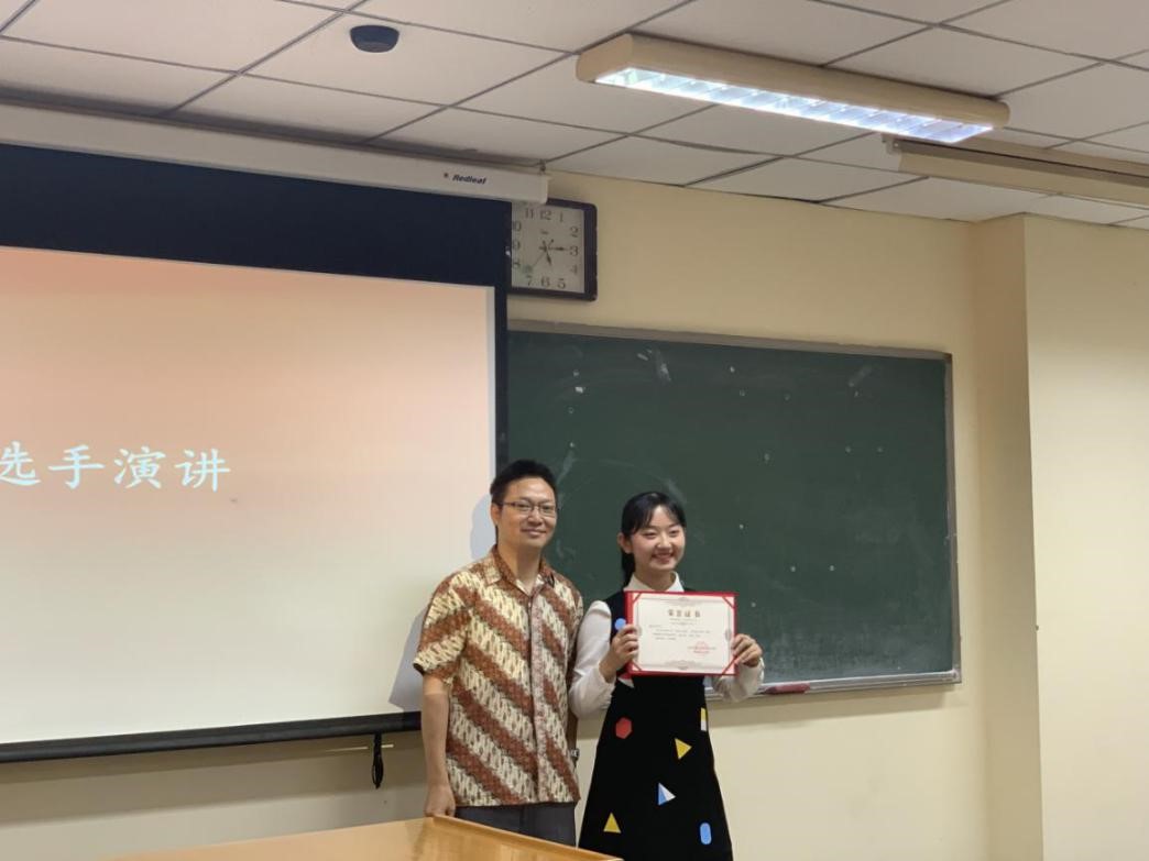 本次演讲比赛顺利举行,获得一等奖的姚佳雨同学则会代表kaiyun开云官方网站参加由学校举办的“我和我的祖国”演讲比赛,期待她能取得好的成绩。