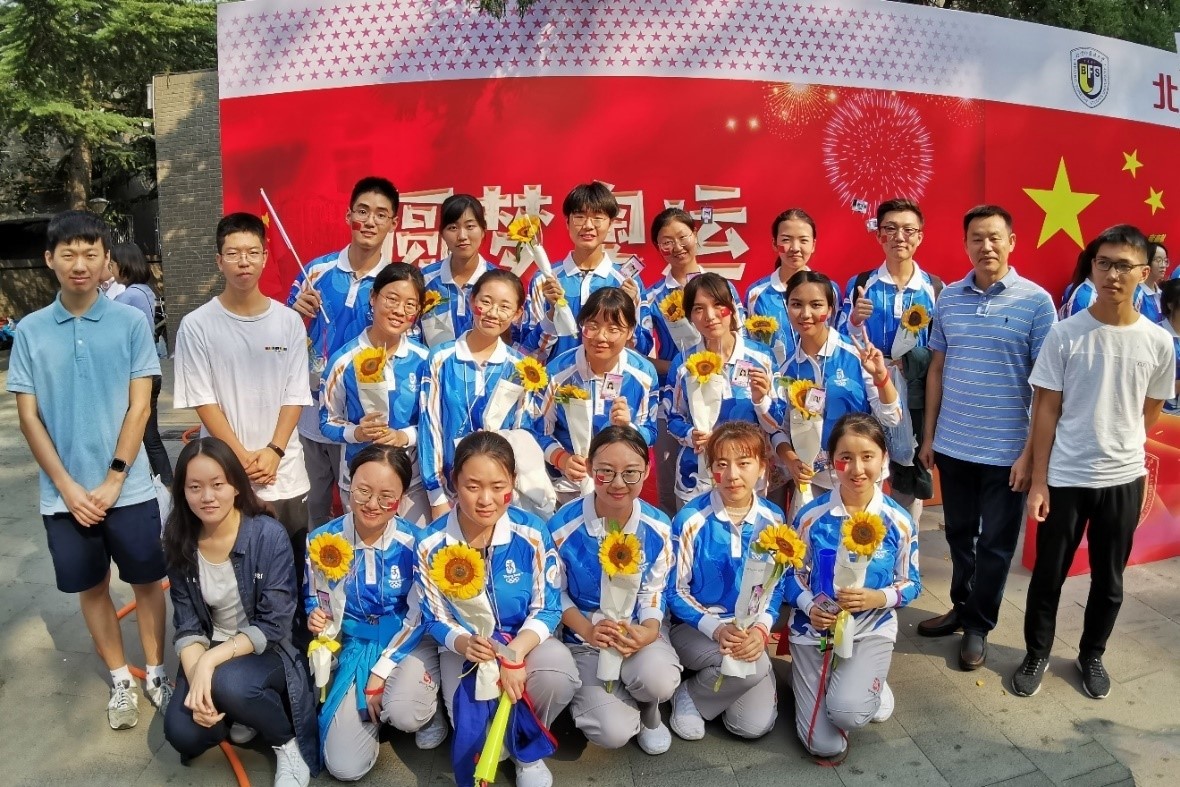 101日下午2时,参加国庆庆祝活动的学生返回学校,kaiyun开云官方网站党总支书记张效民及学生代表到文化广场迎接,祝贺他们圆满完成任务并表示慰问。
