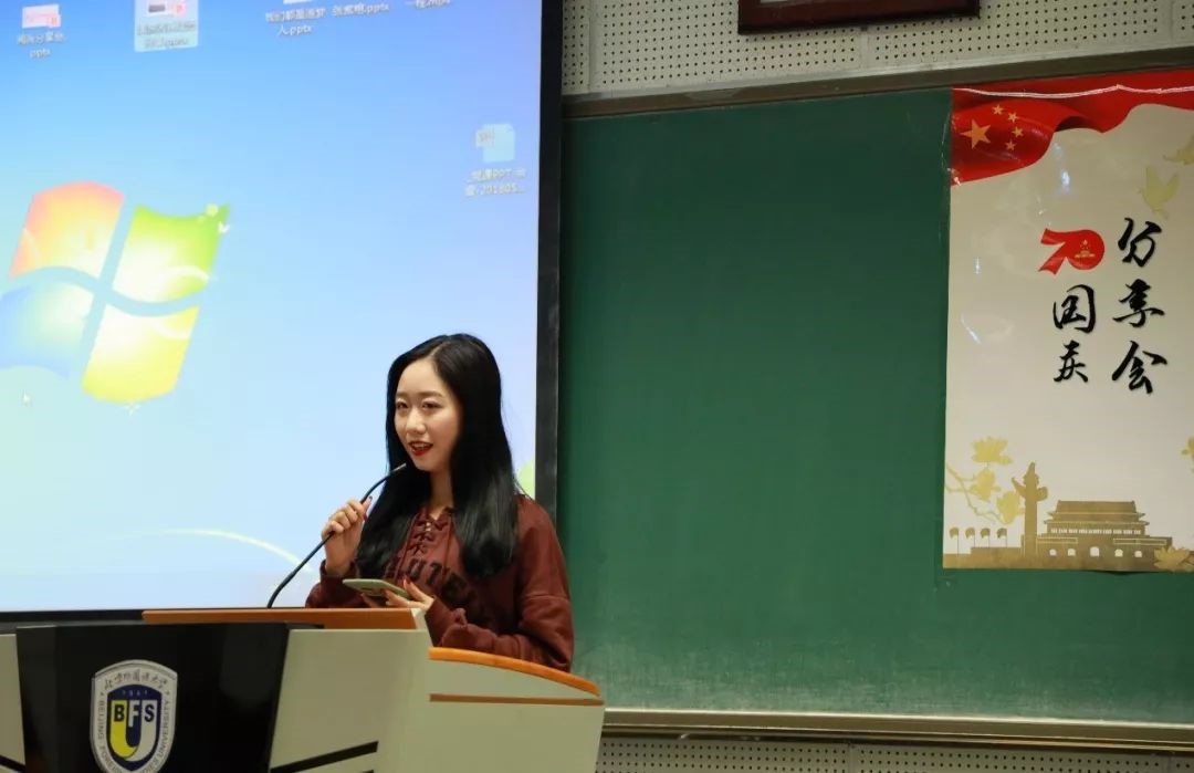 骄傲与自豪,必然如此。河清海晏、国富兵强,足以让每一位中华儿女为之动容。作为国庆盛会的亲历者,各位分享者用自己的真切体会,向在座同学讲述了自己爱国情感的升华过程。来自17方阵的吴俣同学详细描述了十月一日当天长安街上人头攒动、车辆川流不息却井然有序的场景。“能够调动几十万人,在同一个时间参加这样一场大型的活动,交通运输、等待候场、后勤保障......所有细节都做到万无一失,不是每一个国家都能做到的。没有一个强大的祖国,这一切都是空谈。”回忆起站在长安街上看飞机飞过头顶的场景,吴俣同学再一次热泪盈眶:“我想起七十年前,周总理为了显示数量,让我们的飞机多飞几遍。现在,那么多的飞机,就从我的头顶上飞过去,虽然我叫不出他们的型号,但是我知道,这就是祖国的强大,给我带来了超越语言的震撼与思考。”吴俣同学的语调很平静,但是在她极富感染力的叙述下,在座每个人都跟着她一起,为祖国繁荣昌盛而心潮澎湃。