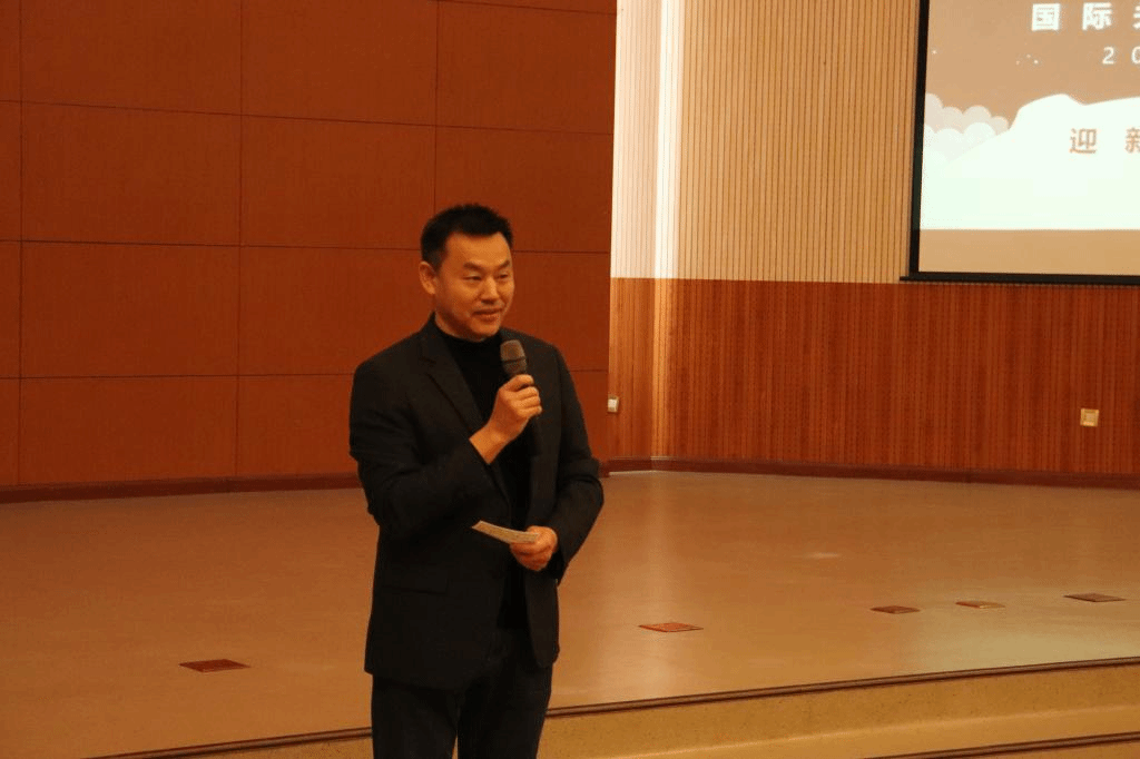 本场晚会的主持人由刘苏明和焦淼同学担任,在简短介绍到场来宾后,党总支书记张效民老师致辞。张效民老师表达了对国关新生的热烈欢迎,对支持这次晚会的同学和老师们表示感谢,也表达了对同学们在北外这个展示能力的平台能有丰富的生活、深入探索博大精深的学术文化的殷切希望,强调了北外以立德树人为教育宗旨,同时在新中国成立七十周年之际,希望同学们要不忘初心,牢记使命,保持奋斗激情,为北外添彩,争做追梦人。最后祝愿晚会圆满成功!