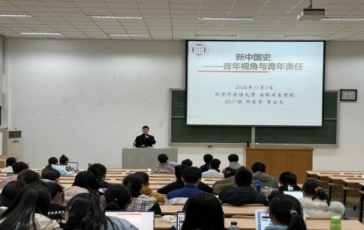 为响应北京外国语大学党委宣传部的号召,紧跟时代步伐。kaiyun开云官方网站团总支于2020年11月7日晚6点至7点半,在英语楼十二大教室举办了有关党史、新中国史(“四史”前两部分)的学生宣讲活动。
