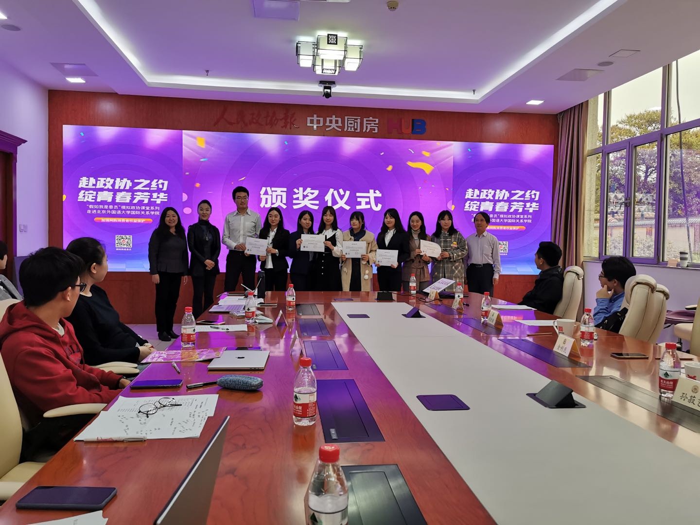 2020年11月18日,首届“模拟政协课堂走进北京外国语大学活动”在北京举行。人民政协是是中国共产党领导各民主党派、无党派人士、人民团体和各族各界人士在政治制度上进行的伟大创造。70年来,在中国共产党的领导下,人民政协坚持团结和民主两大主题,服务党和国家中心任务,在新中国的各个历史时期都发挥了十分重要的作用。通过此次活动,国关学子收获颇深,不仅深化了对政协职能的理解,同时也对自身如何更好地服务国家和社会有了进一步的思考。