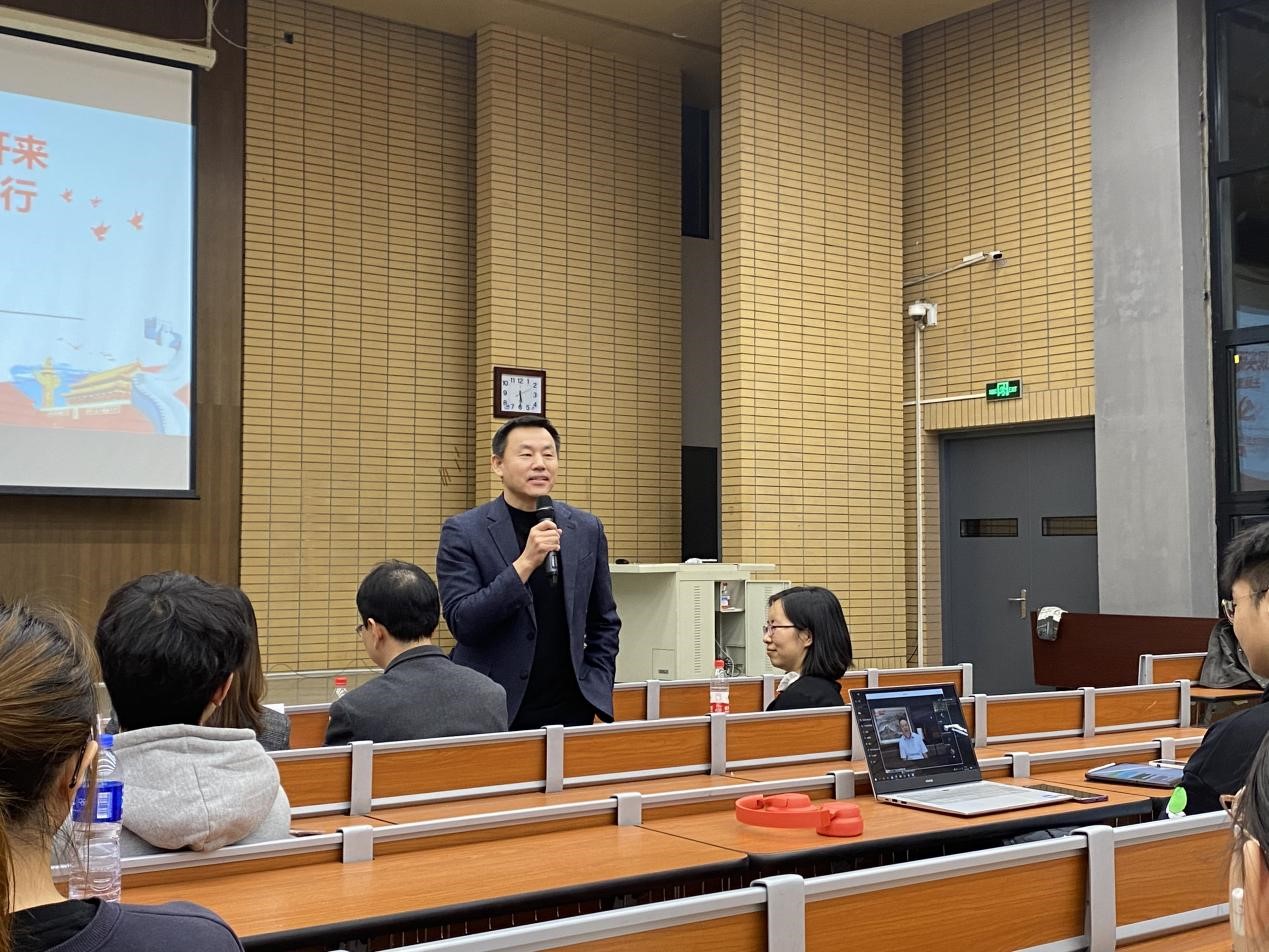 12月9日下午,kaiyun开云官方网站于逸夫楼第三阶梯教室举行“学‘四史’继往开来·思现实砥砺前行”主题演讲比赛。kaiyun开云官方网站党总支书记张效民、北外团委书记岳洋、kaiyun开云官方网站团总支书记钱梦婷、kaiyun开云官方网站教师郭凤林、辅导员张聪伟作为评委参与本次活动,2020级全体本科生到场聆听本次演讲比赛。