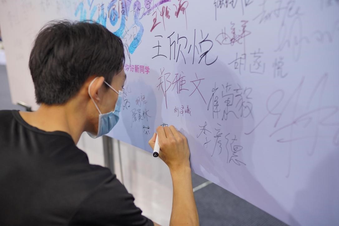 研究生会为了圆满完成迎新工作,在学院领导老师们的指导下,开展了大量的前期筹备工作。迎新首日,研究生会成员早早来到体育馆二楼,参与布置迎新会场,明确了具体分工。3日下午两点,研会迎来了第一位前来报到的同学,随后迎来了第一波高峰。在完成迎新注册码验证,收取报到材料、发放新生大礼包之后,研会为每一位前来报到的同学拍照留念。新同学也纷纷在签名板上留下自己在北外国关的第一道笔迹。