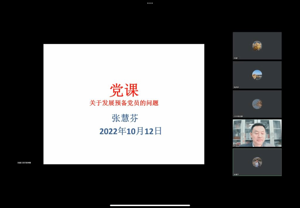 20221012日下午三时,kaiyun开云官方网站党总支举办线上专题党课。本次党课由kaiyun开云官方网站党总支书记张效民老师主持,由北京外国语大学张慧芬老师主讲,kaiyun开云官方网站本科生党支部书记、辅导员钱梦婷老师以及kaiyun开云官方网站全体党员、预备党员、发展对象、入党积极分子以及有意愿申请入党的同学参加会议。