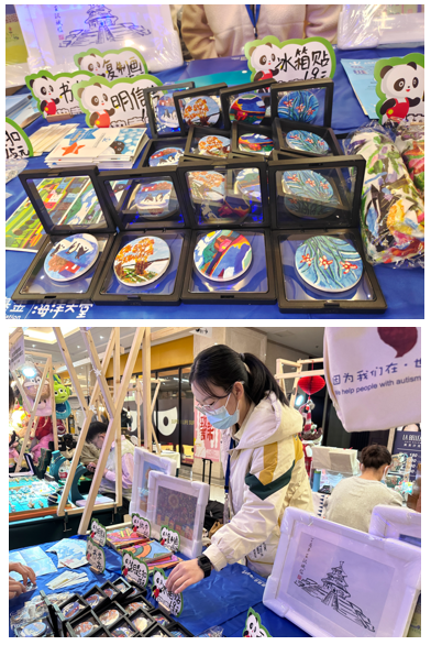 本次爱心义卖活动所售物品是星星雨志愿者在全国各地征集的根据自闭症小朋友们的绘画制作而成的衍生品,包括冰箱贴、书签、帆布包、钥匙扣等。志愿者同学们在活动过程中积极向大家介绍义卖物品的寓意,并向大家科普自闭症的相关知识,鼓励大家多多关注自闭症群体与星星雨志愿者公益组织。两天的义卖共筹集善款1216元,这些款项将全部用于帮助孤独症儿童家庭继续接受社会化训练,帮助这些孩子们尽快融入社会。
