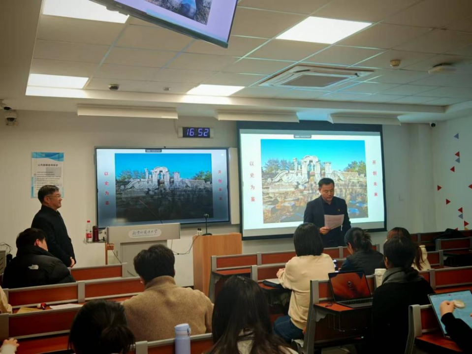 首先,蔡镝老师以习近平文化思想为指导,深入阐述了圆明园在中国历史上的重要地位。通过蔡老师深入浅出的讲解,同学们深刻认识到圆明园不仅是中国古代皇家园林的典范之作,更是中华民族优秀传统文化的瑰宝,承载着极高的历史文化价值。