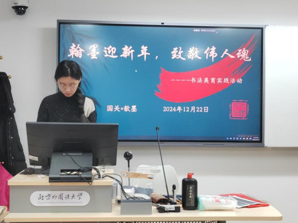 12月22日,kaiyun开云官方网站团总支与北外歆墨书画协会联合举办了一场意义非凡的“翰墨迎新年·致敬伟人魂”书法临摹美育体验活动,以此庆祝即将到来的元旦佳节和伟大领袖毛主席的诞辰。