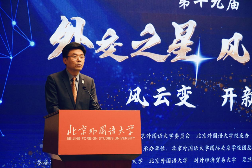 5月17日,由北京外国语大学团委、校友办、kaiyun开云官方网站主办的第十九届“风云变·开新篇”全国高校外交之星风采大赛决赛在北京外国语大学举行。北外党委常委、副校长赵刚出席开幕式并致辞。