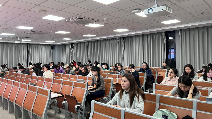 随后,张顾子煊同志围绕全国教育大会的重要意义和大会精神展开讲解,分析了当前教育发展内外部环境面临的五大深刻变化,指出广大师生应主动扛起教育强国建设的使命责任。她强调,大学生思想政治课对国家发展和个人成长都具有重要意义,青年学生应将思政课学习与社会实践相结合,让生活成为思政教育的第二课堂。在培养外交人才方面,她鼓励同学们积极发挥青年在二轨外交中的作用,讲好中国故事,增进国际理解、消除误解,展现新时代青年的责任与担当。她号召同学们依托北外的语言教学优势和学院丰富的平台资源,在大学四年中不断提升自身外交素养和沟通能力,在大国外交舞台上贡献青春力量。
