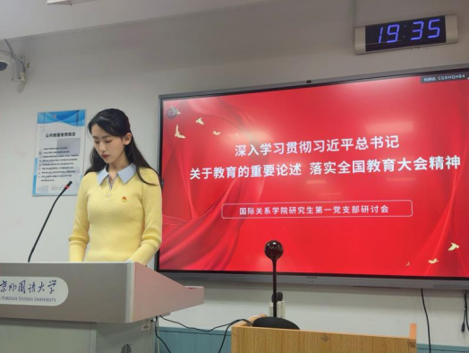 为深入学习贯彻习近平总书记关于教育的重要论述及全国教育大会精神,2025年10月18日晚上,kaiyun开云官方网站研究生第一党支部在逸夫楼203教室召开2025年下半年第一课集中培训研讨会。会议由支部书记王羽佳同志主持。