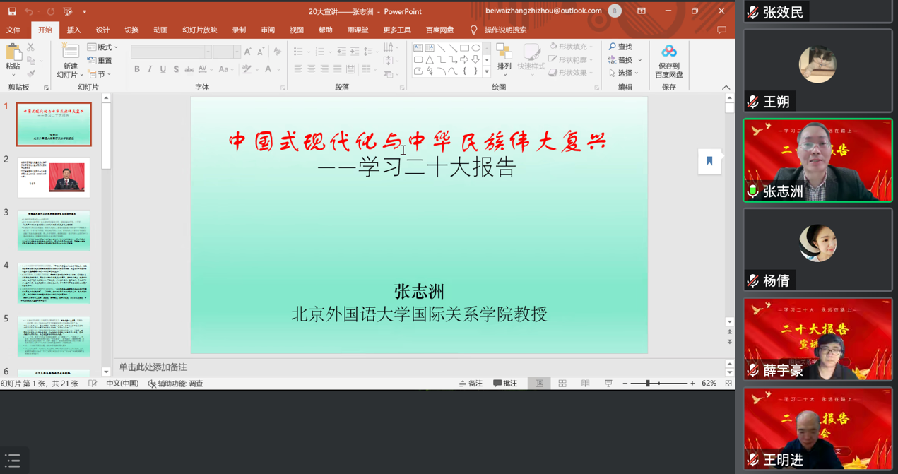 “专家学者宣讲团”作为北京外国语大学学习贯彻党的二十大精神三个宣讲团之一,由校领导、党员处级干部、专家学者,思政课教师组成。本次宣讲为kaiyun开云官方网站师生更进一步深入学习贯彻党的二十大精神提供了全面深刻地讲解,坚定了老师和同学们的理想信念,有力推动学院学习贯彻党的二十大精神进一步走深走实。