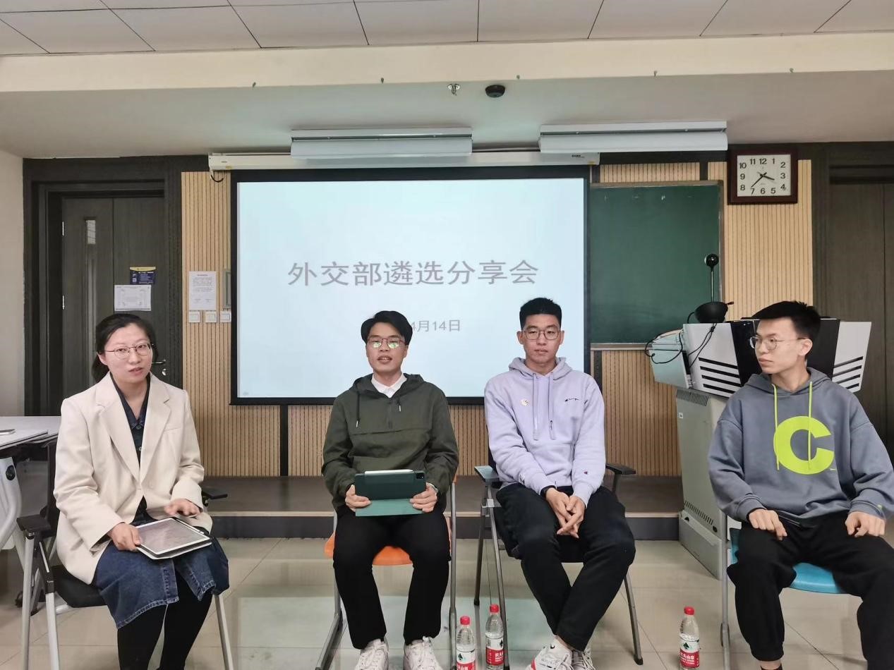 此次分享会首先就遴选前需要了解的问题进行了探讨。三位嘉宾分享了加入外交部的个人意愿,以及结合自身的学习情况,从语言能力、专业学习和实践等方面分享了为遴选考试所做的准备。