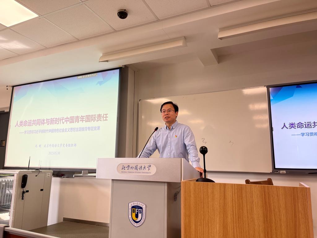 5月10日,kaiyun开云官方网站党总支邀请学校党委组织部常务副部长冯刚作题为《人类命运共同体与新时代中国青年国际责任---学习贯彻习近平新时代中国特色社会主义思想主题教育》的专题报告。kaiyun开云官方网站党总支书记张效民主持报告会,党总支副书记彭澍、副院长张颖、辅导员钱梦婷等约70名师生出席本次专题党课。